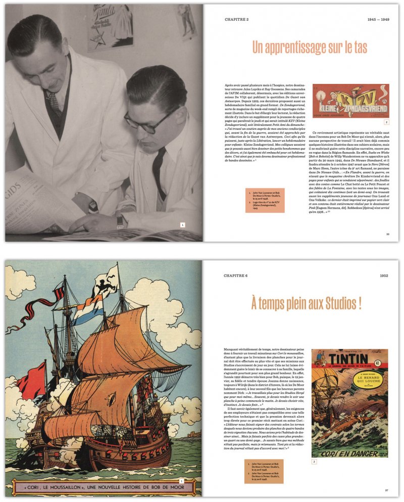 Verdere info van BD Must: "Gilles Ratier heeft gebruik kunnen maken van talrijke bronnen en toegang tot de archieven van de familie De Moor, foto's en documenten uit Studio Hergé en de agenda's van Bob De Moor. Hij laat ons meerdere decennia van de gouden eeuw van het stripverhaal herbeleven, de samenwerking van Bob met Hergé, zijn essentiële bijdrage aan de avonturen van Kuifje, zijn omvangrijke persoonlijke œuvre (Barelli, Cori de Scheepsjongen, Meester Mus, Nonkel Zigomar, Snoe en Snolleke) en zijn bijdragen aan belangrijke stripreeksen zoals Lefranc en Blake en Mortimer!