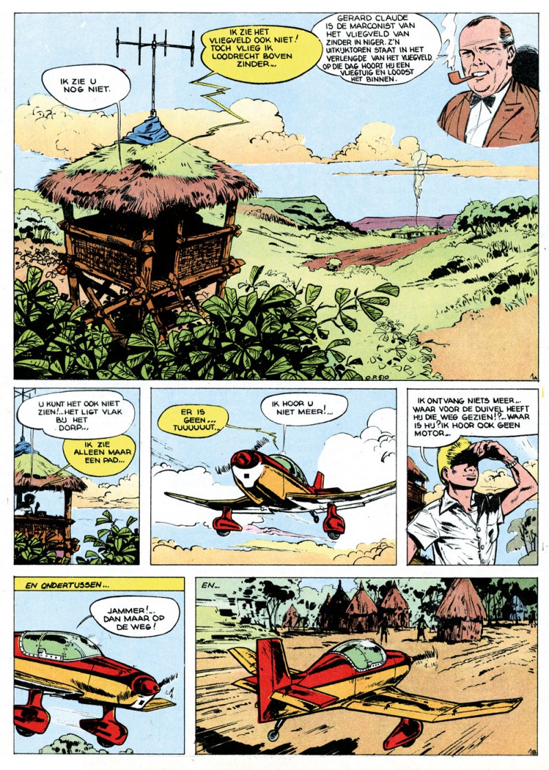- Vliegmeisje, 4 pagina's uit Robbedoes (1965), scenario van Octave Joly